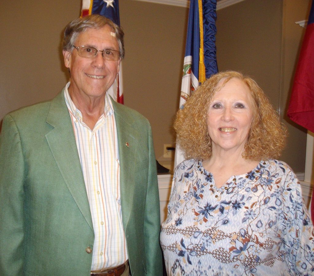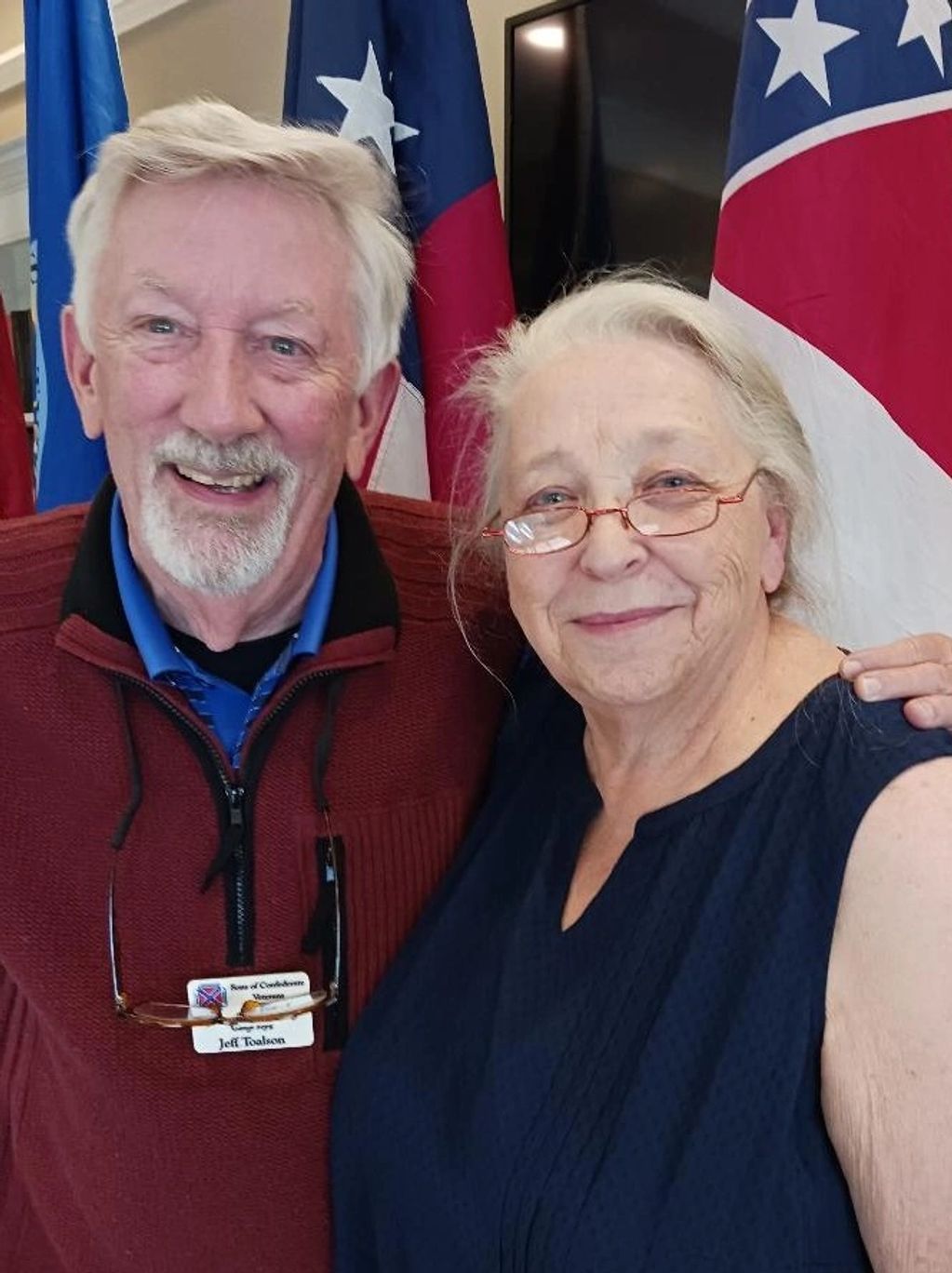 Commander Jeff Toalson (L) welcomed Mrs. Billie Earnest to the April meeting. Billie gave a marvelous talk on the life of William Mahone with emphasis on his railroading career, his move from the Democratic to Republican party post-war, and his interest in the education and encouragement of success for the Negroes.