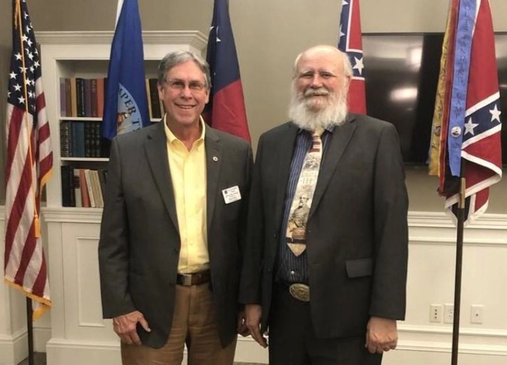 Cmdr. Jeff Toalson welcomes S.C.V. Cmdr. in Chief Donald Kennedy to our June meeting. His captivating talk ranged over all sort of topics but ended with a focus on new membership and promoting the S.C.V. in positive ways as the Cavalry did with our Hurricane Helene / Mercy Chefs Relief Program.