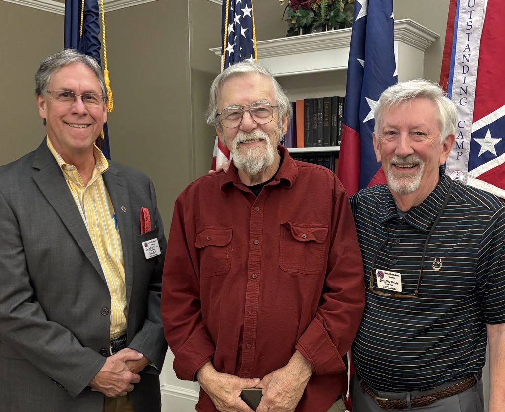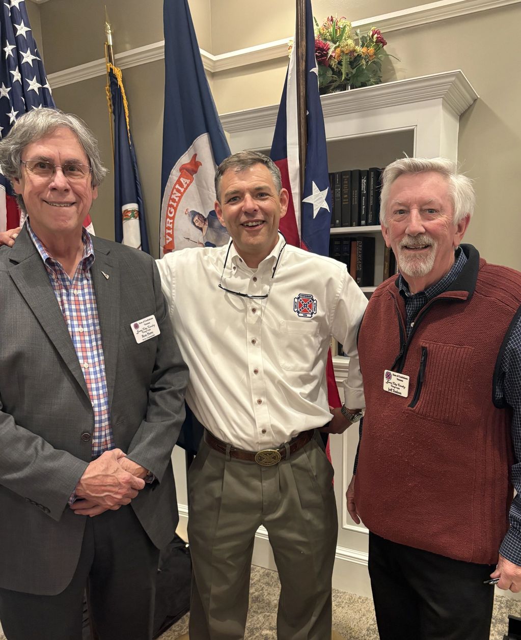 Cmdr. Jeff Toalson (L) and 1st Lt. Cmdr. Ron Perry (R) welcome Dr. John Coulter II to the April meeting of the James City Cavalry. We learned about the life of General James H. Lane, his service as the youngest general in the Army of Northern Virginia, his 3 wounds in battle, his service from Big Bethel to Appomattox and his postwar 30+ year career as an engineering professor at V.P.I., the Miss